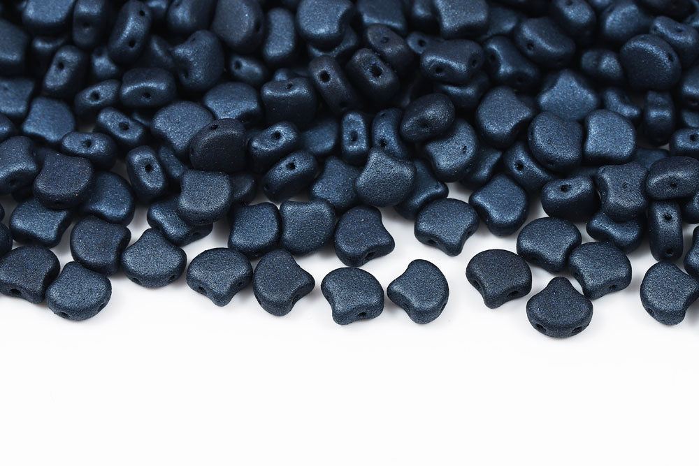 Ginko 7.5×7.5mm Metallic Suede Dark Blue 2-Hole Czech Beads