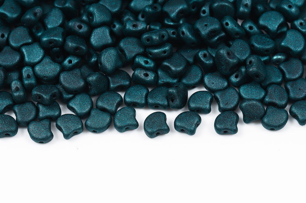 Ginko 7.5×7.5mm Metallic Suede Medium Blue/green 2-Hole Czech Beads