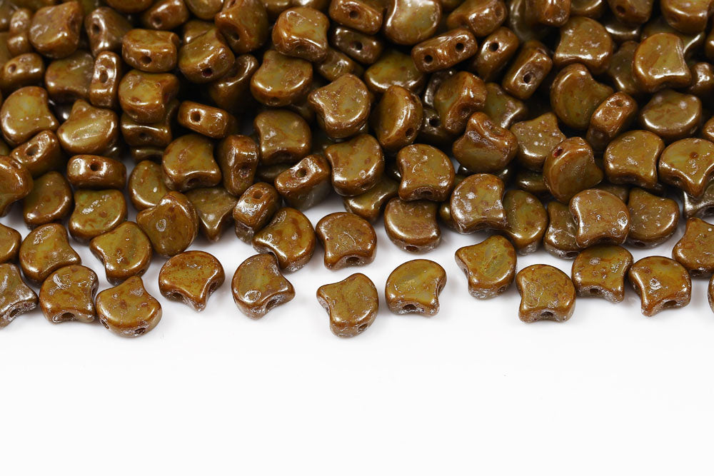 Ginko 7.5×7.5mm Opaque Green Picasso 2-Hole Czech Beads