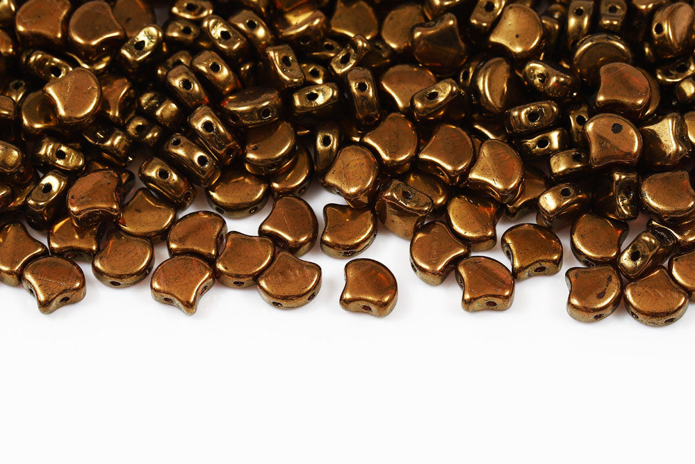 Ginko 7.5×7.5mm Crystal Copper 2-Hole Czech Beads