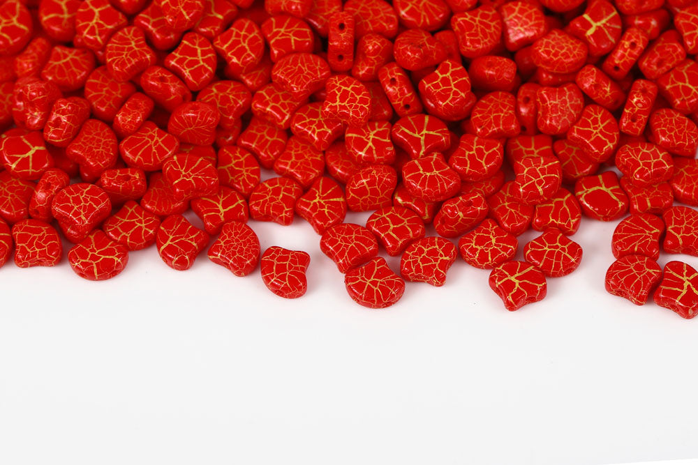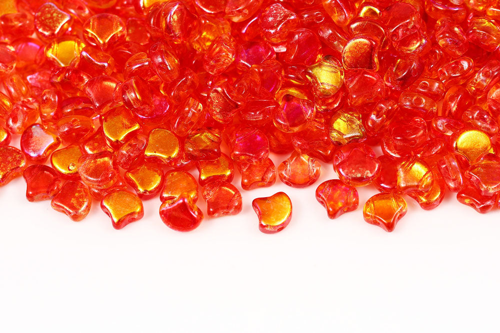 Ginko 7.5×7.5mm Ionic Red/yellow 2-Hole Czech Beads