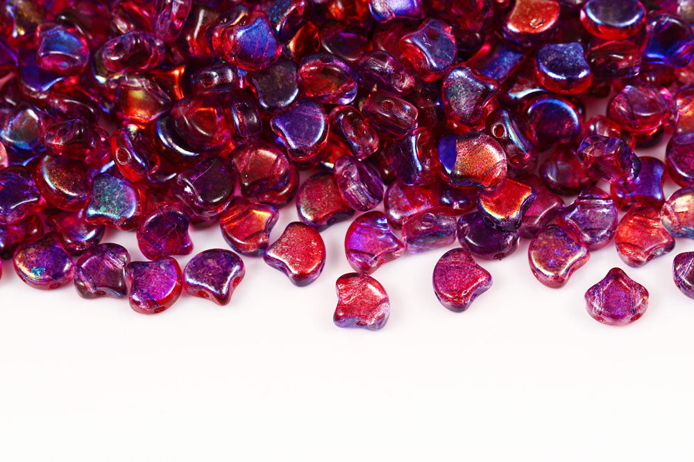 Ginko 7.5×7.5mm Summer Rainbow Dark Violet 2-Hole Czech Beads