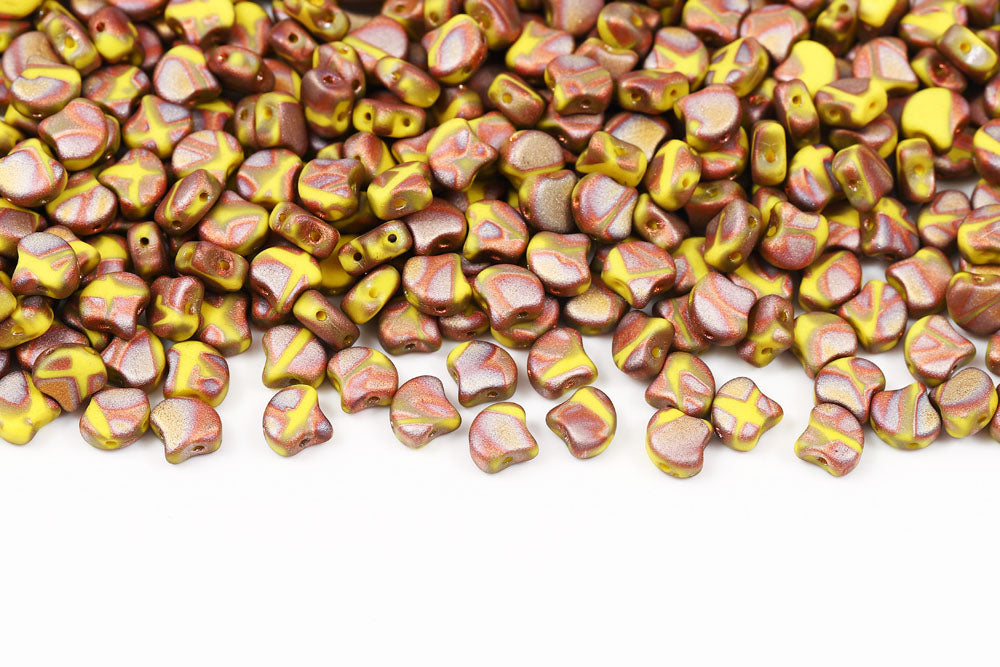 Ginko 7.5×7.5mm Light Matte Dark Yellow 2-Hole Czech Beads