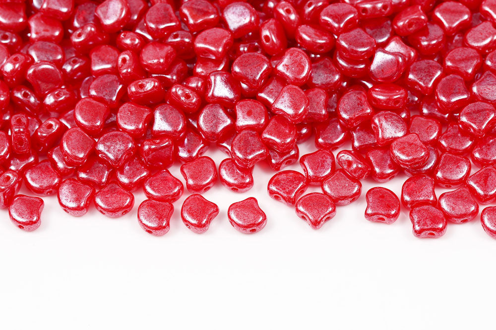 Ginko 7.5×7.5mm Opal Red White Luster 2-Hole Czech Beads