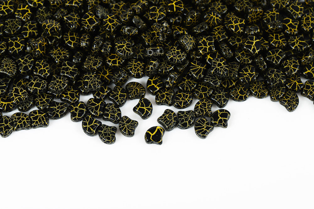 Ginko 7.5×7.5mm Ionic Jet/yellow 2-Hole Czech Beads
