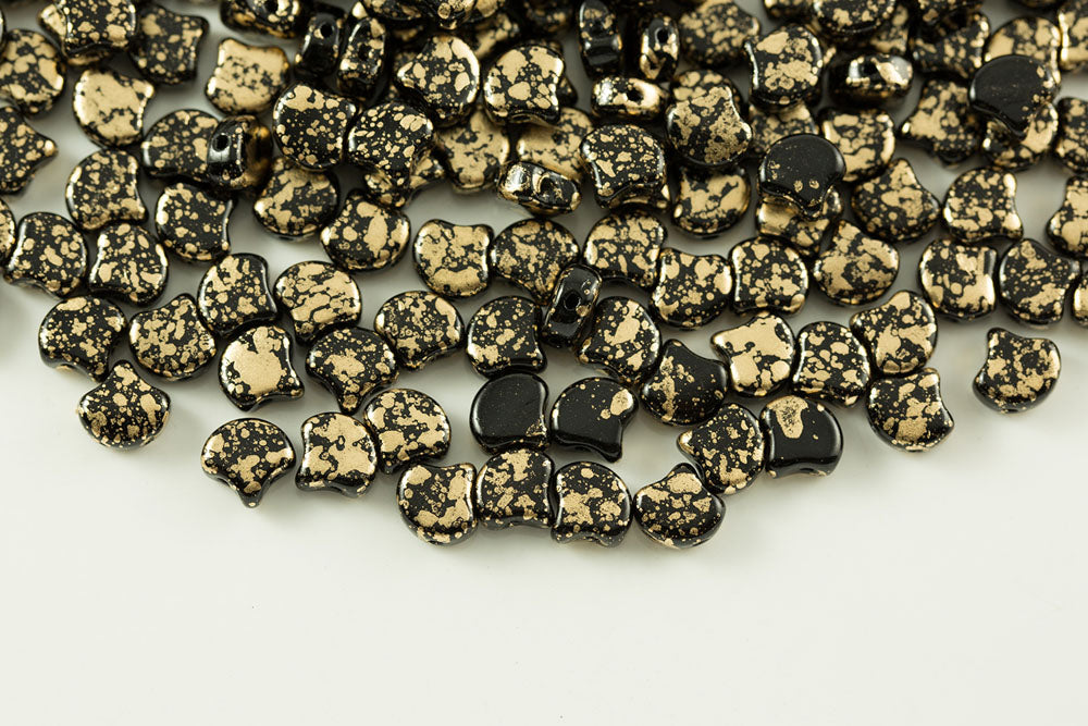 Ginko 7.5×7.5mm Gold Splash Jet 2-Hole Czech Beads