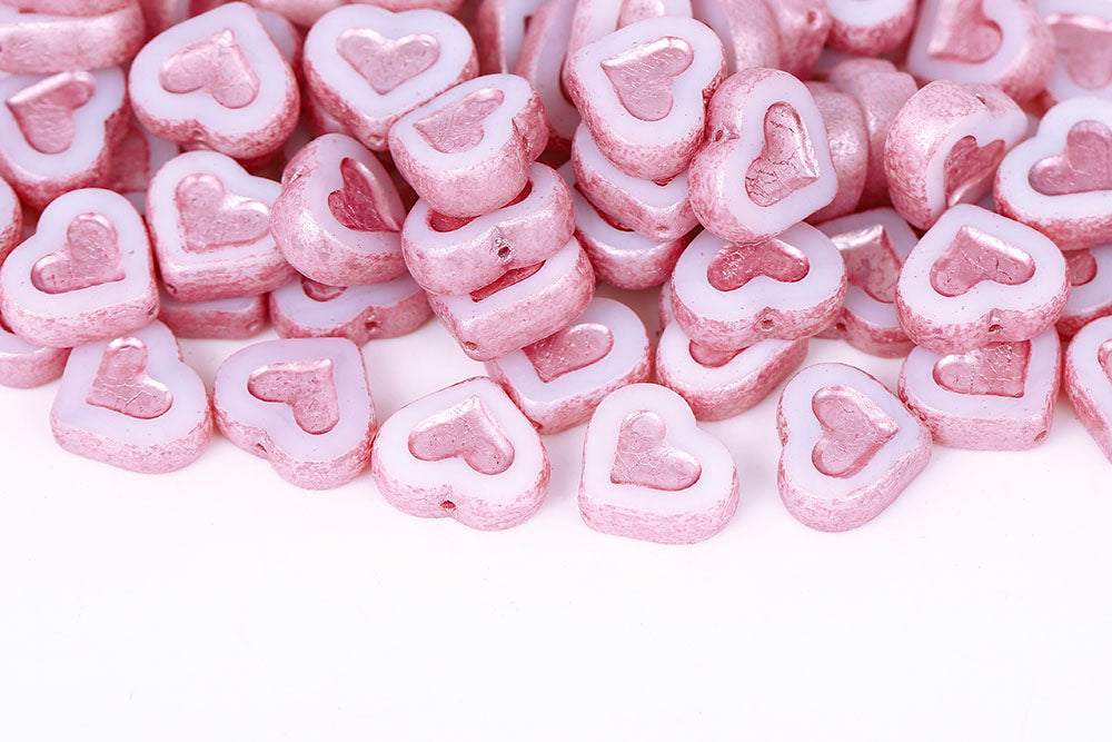 Heart 14×12mm Chalk Pink Finish 1-Hole Czech Beads