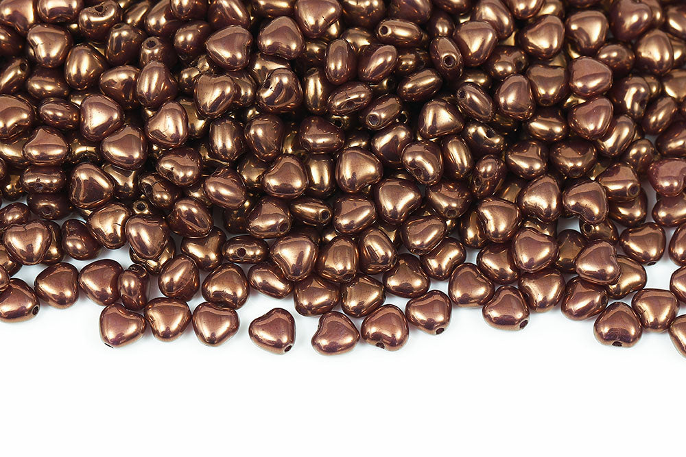 Heart 8mm Copper Splash Opal Peach Czech Glass Beads