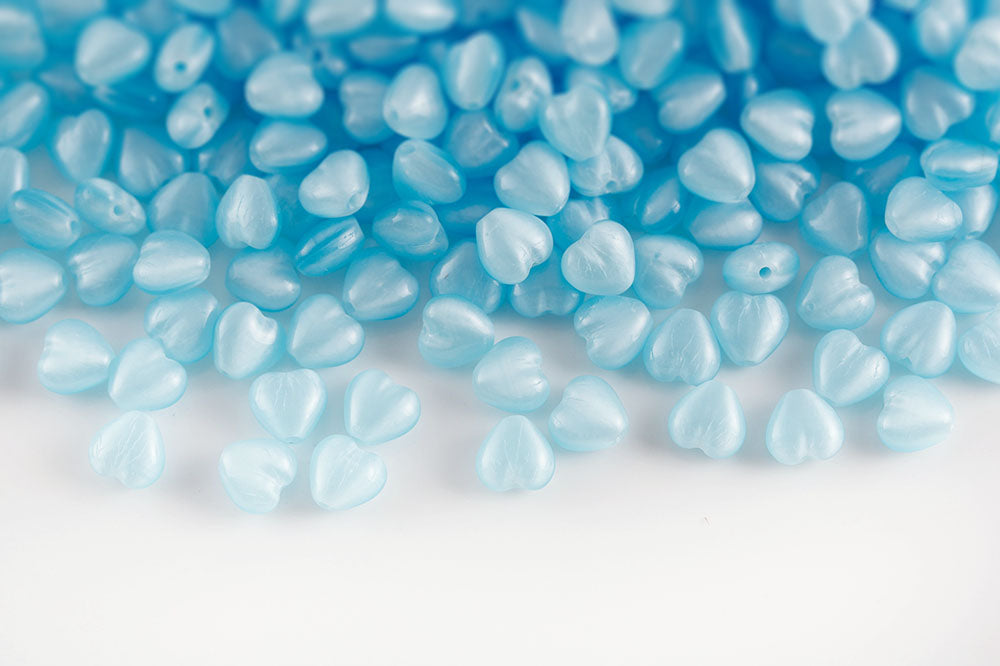 Heart 6mm Opal Silk Blue Czech Glass Beads