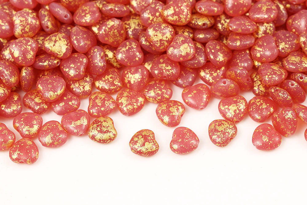 Heart 16×13mm Crystal Pink Mixed With Gold Marble Finish Czech Beads