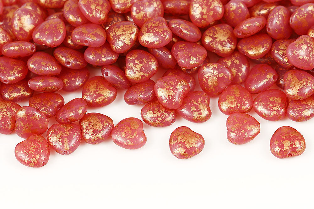 Heart 10mm Gold Splash Siam Czech Glass Beads
