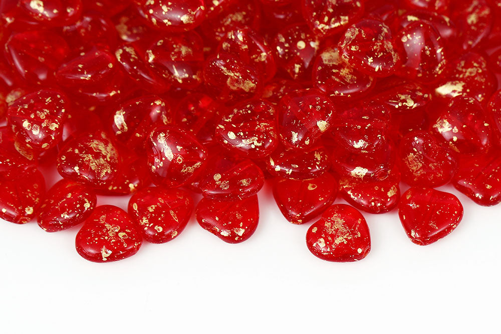 Heart 8mm Opaque White Red Mixed Gold Speckle Finish Czech Beads