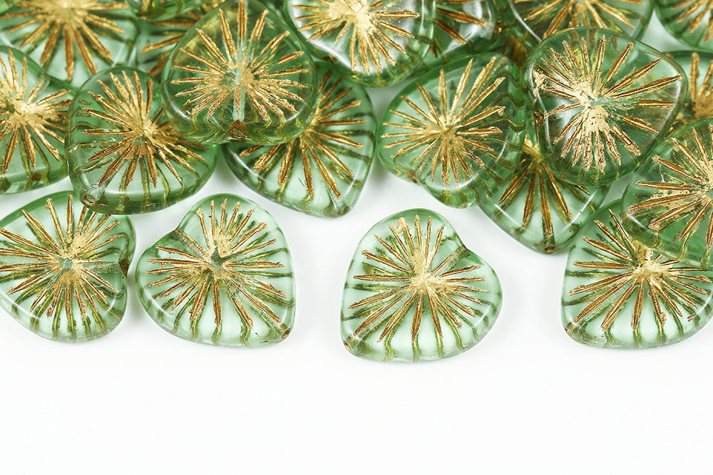 Heart 18mm Grass Green With Gold Czech Glass Beads