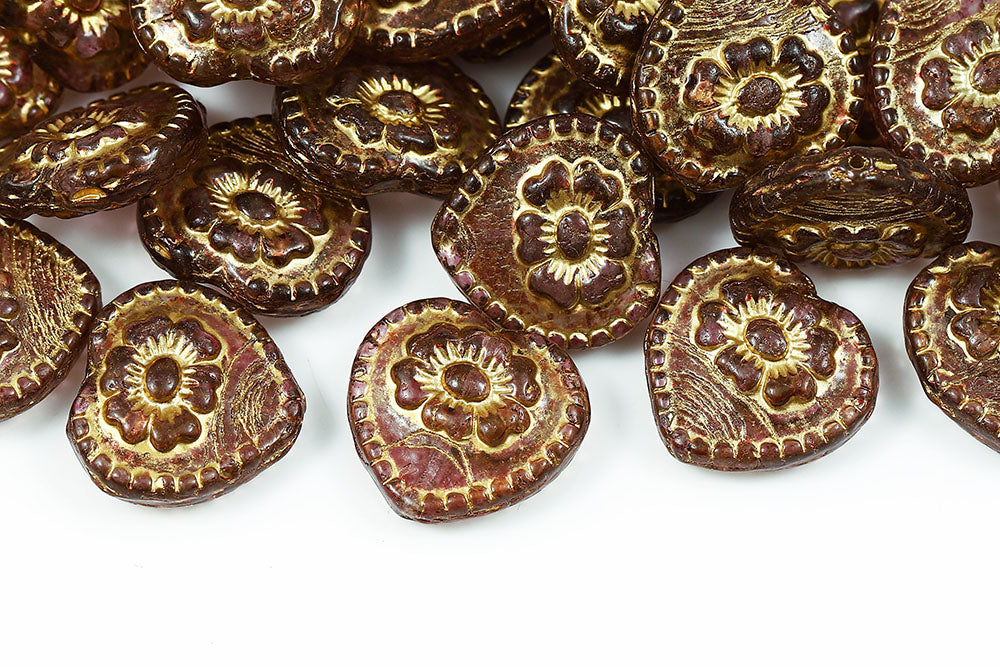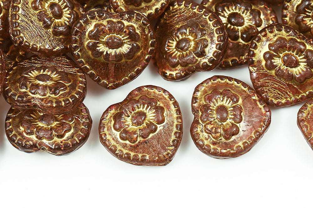 Heart 16×13mm Crystal Silk Brown Mixed With Gold Marble Finish Czech Beads