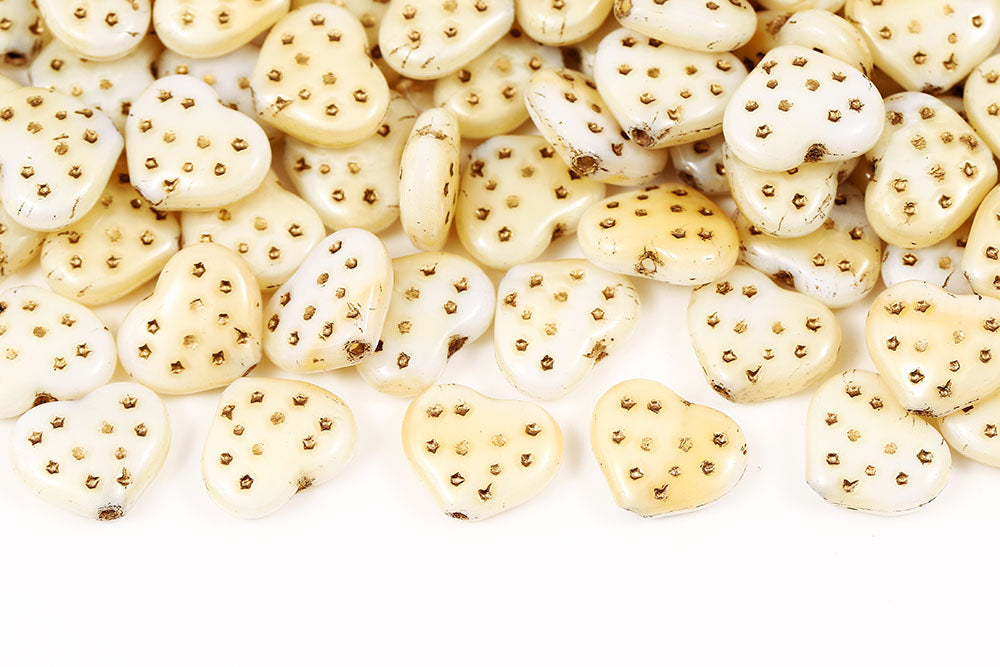 Heart 18mm Chalk With Gold Czech Glass Beads
