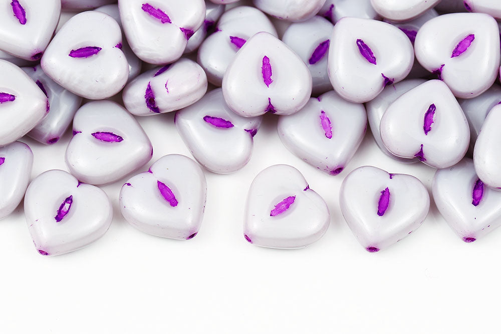 Heart 14mm Silk Violet With Purple Czech Glass Beads