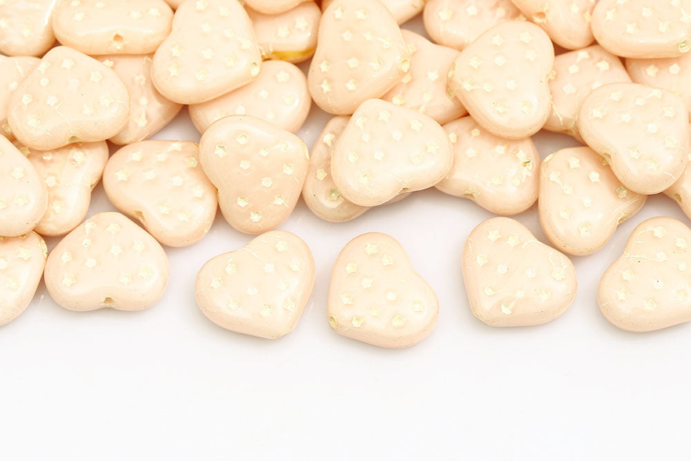 Heart 12×14mm Silk Lt.Peach With Ivory Czech Glass Beads