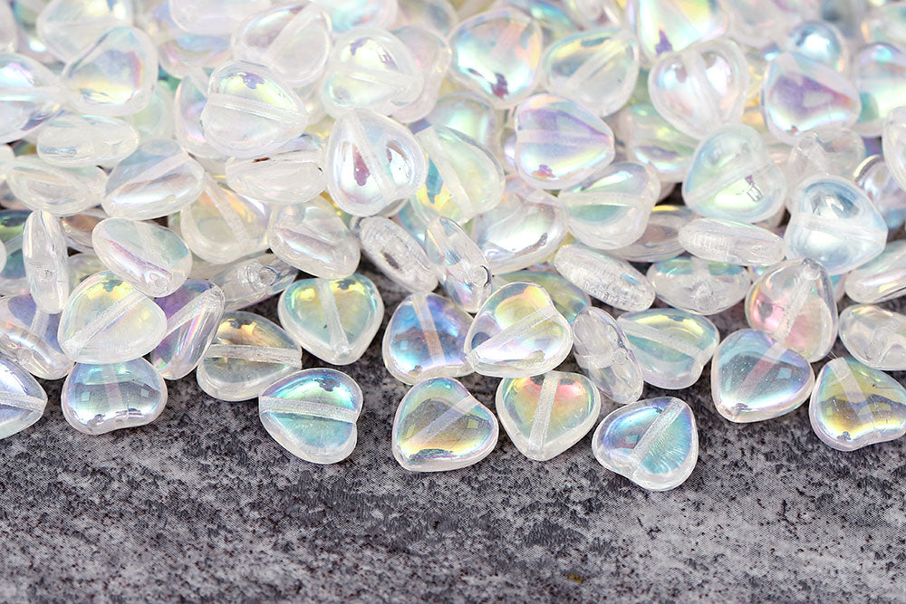 Heart 10mm Crystal AB Czech Glass Beads