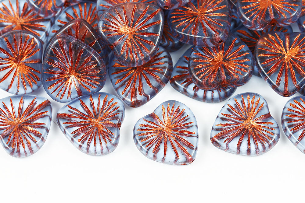 Heart 18mm Lt.Sapphire With Copper Czech Glass Beads
