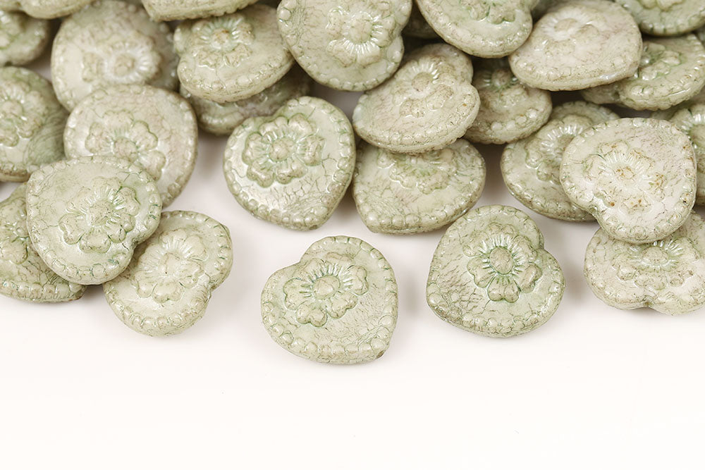 Heart With Rose 17×17mm Chalk Green Luster Czech Beads