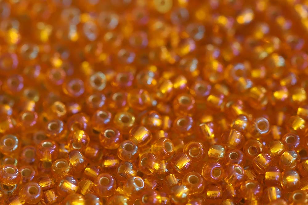 Preciosa Rocailles 10/0 Transparent Light Orange Silver Lined Rainbow col.87069