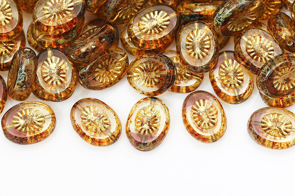 Kiwi 14×10mm Crystal Purple Mixed Travertin With Gold 1-Hole Czech Beads