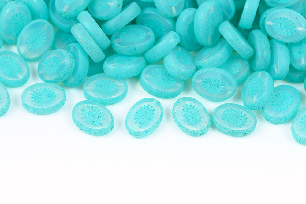 Kiwi 14×10mm Opal Lt.Aqua Travertin 1-Hole Czech Beads
