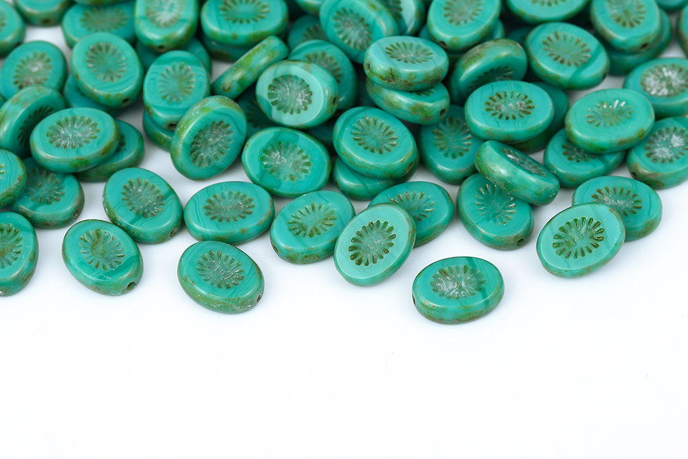 Kiwi 14×10mm Turquoise Green Travertin 1-Hole Czech Beads