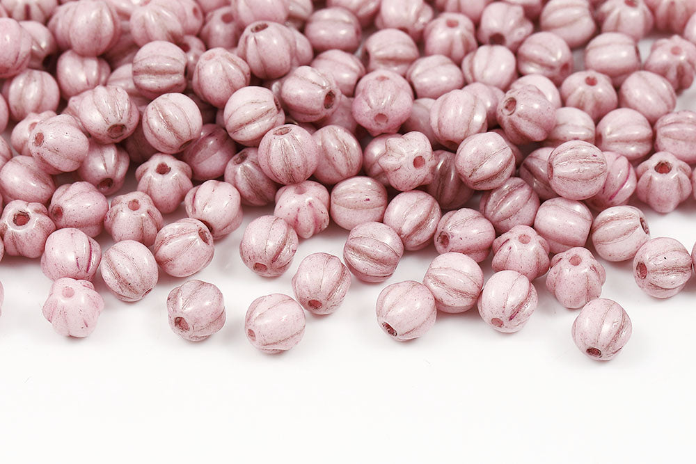 Melon 6mm Chalk Lila Luster Czech Glass Beads