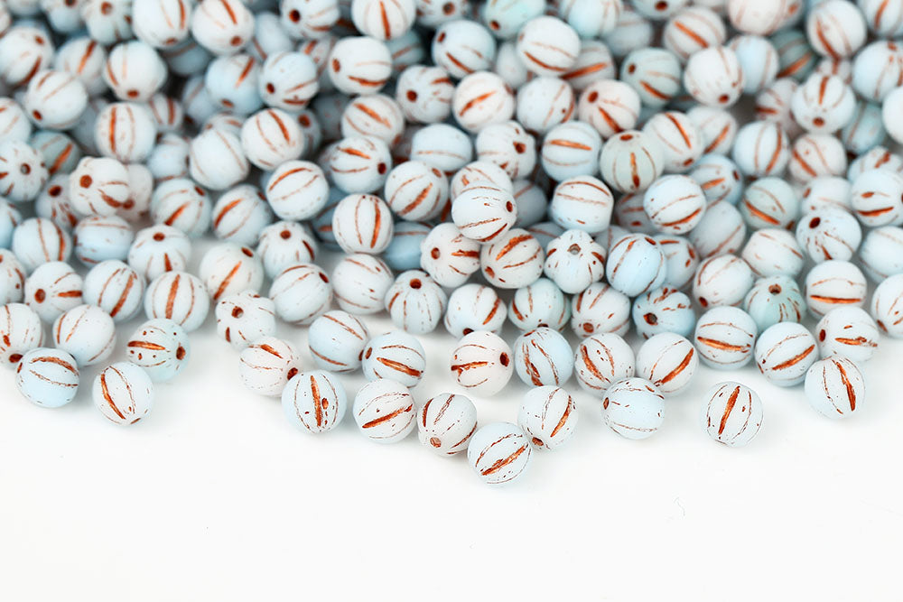Melon 6mm Opaque Chalk Aqua Mixed With Copper Matt Czech Beads