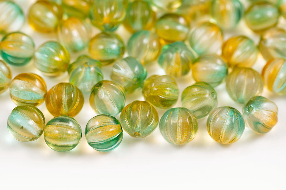 Melon 8mm Crystal Yellow Green Finish Czech Beads