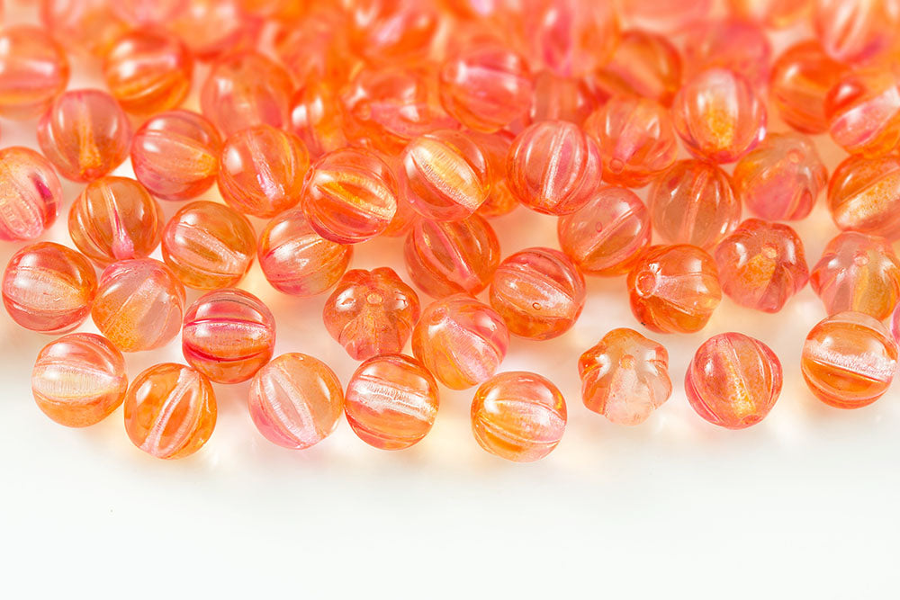 Melon 8mm Crystal Yellow Rose Finish Czech Glass Beads
