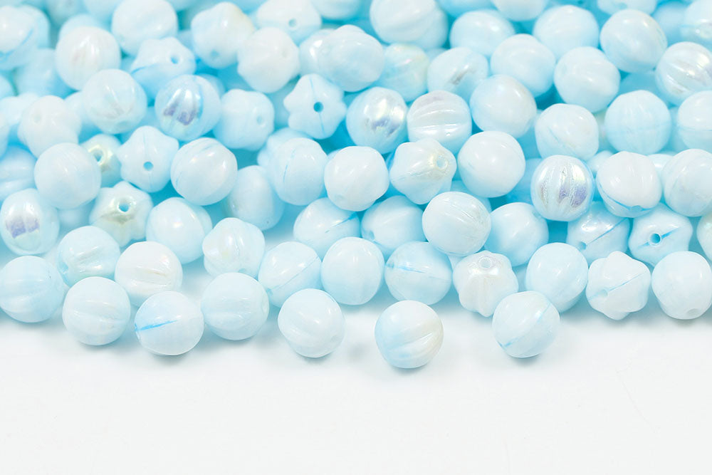 Melon 6mm Opaque Chalk Aqua Mixed AB Czech Beads