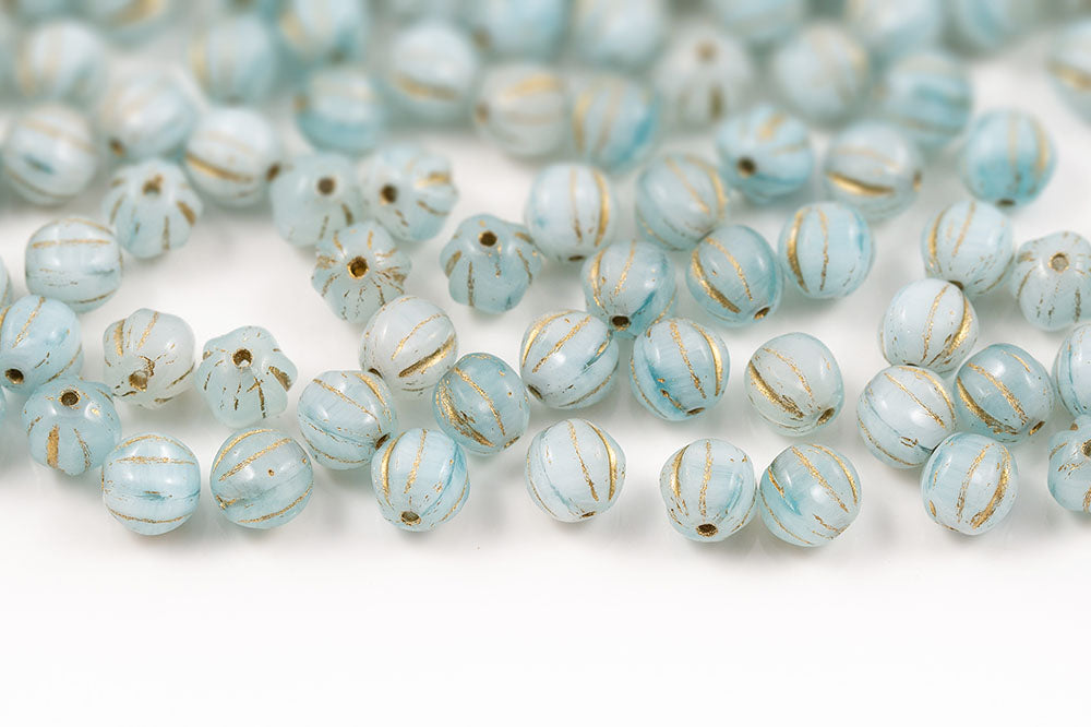 Melon 6mm Opal White Aqua Mixed With Gold Czech Beads