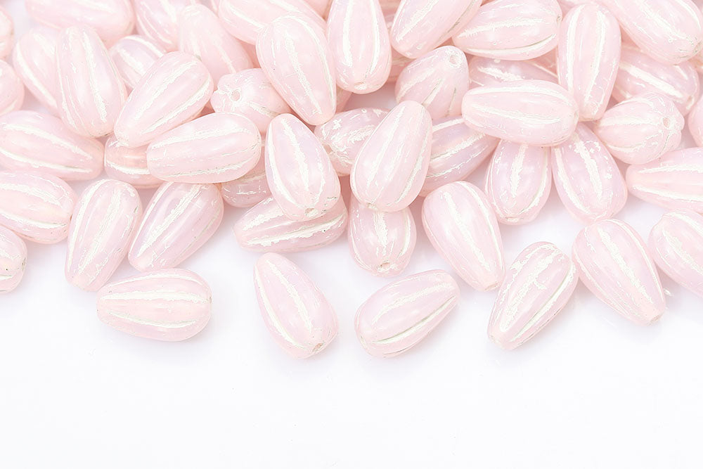 Melon Drops 13×8mm Opal Pink With White Czech Beads