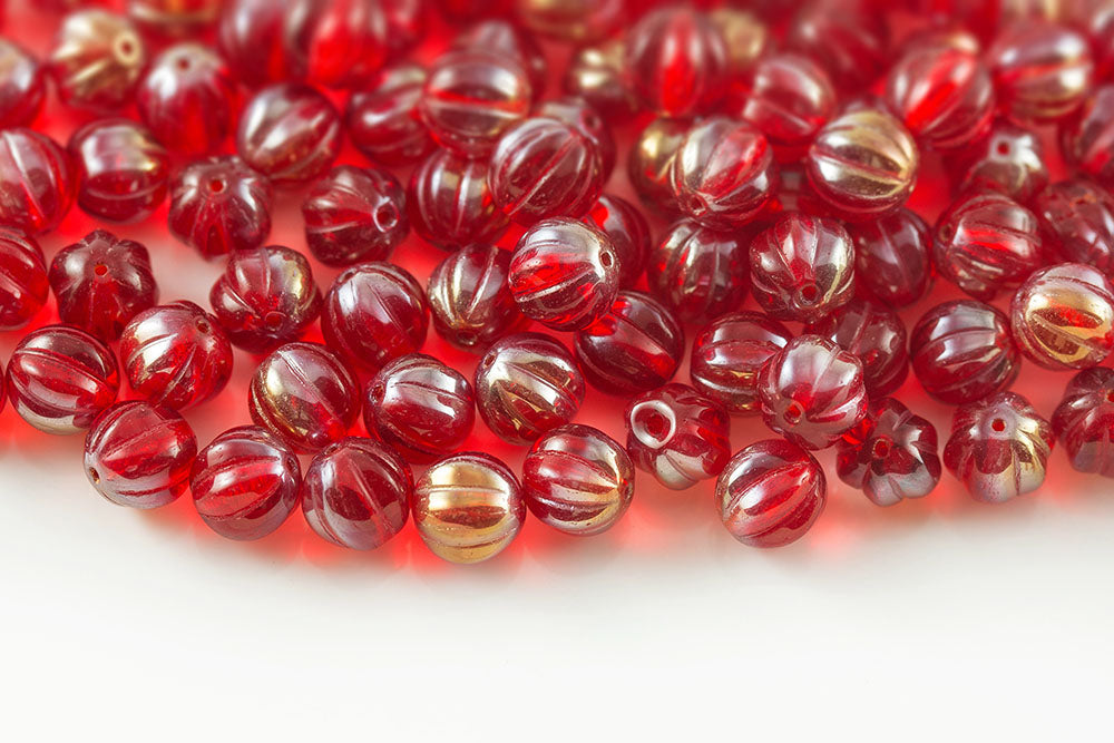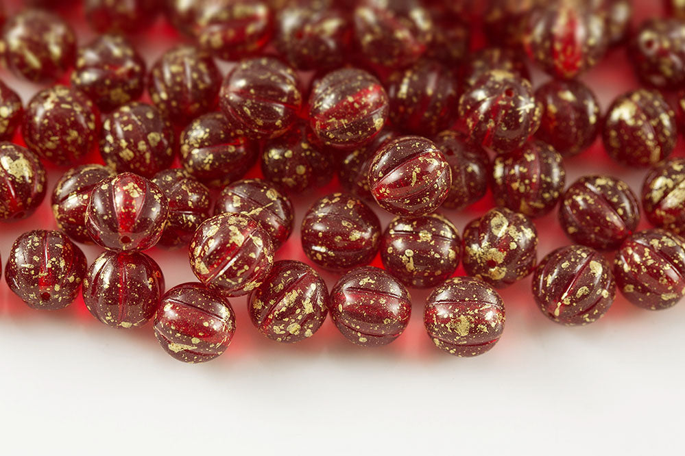 Melon 8mm Gold Splash Siam Czech Glass Beads