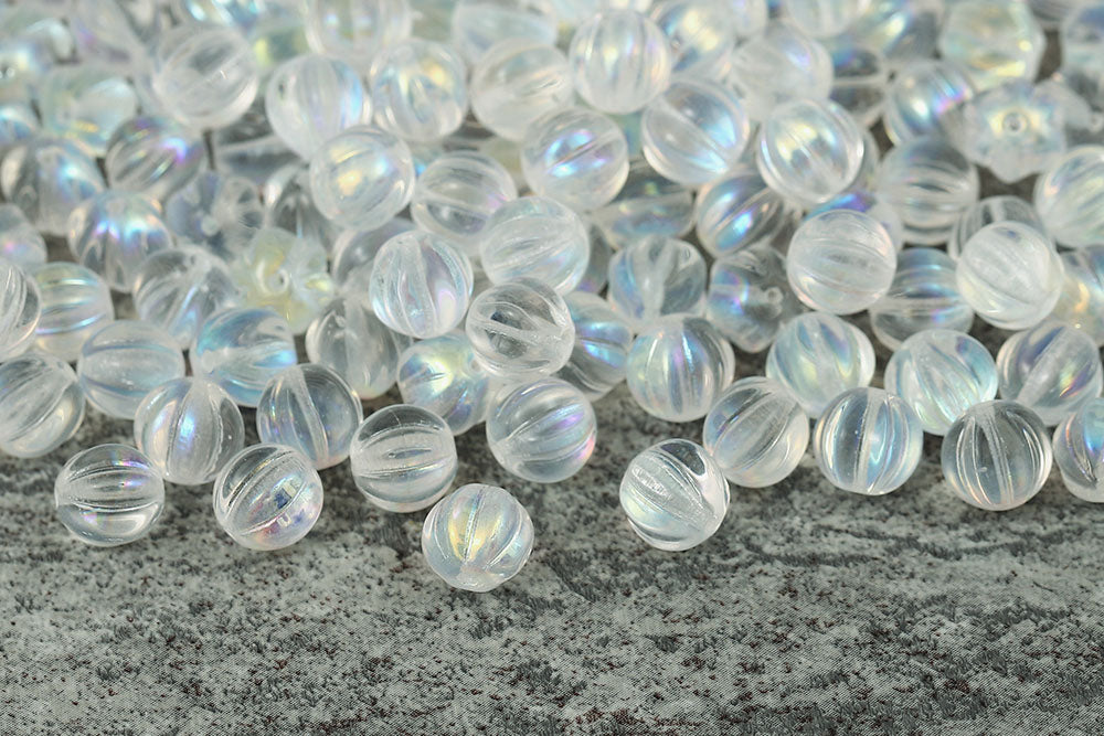 Melon 6mm Crystal AB Full Etched Finish Czech Glass Beads