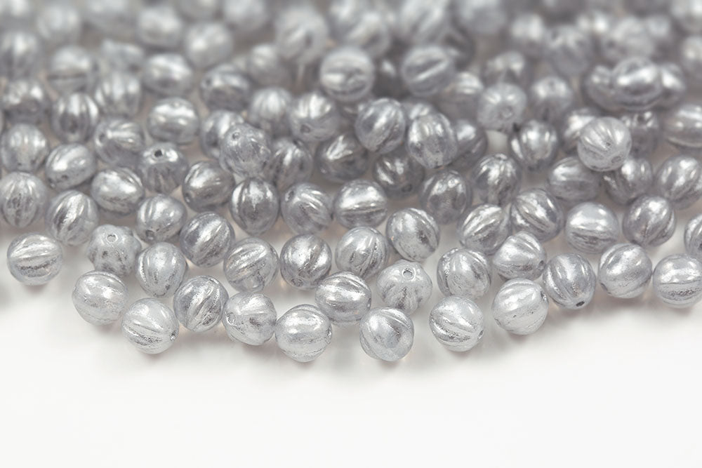 Melon 6mm Crystal Opal Mixed With Silver Czech Glass Beads