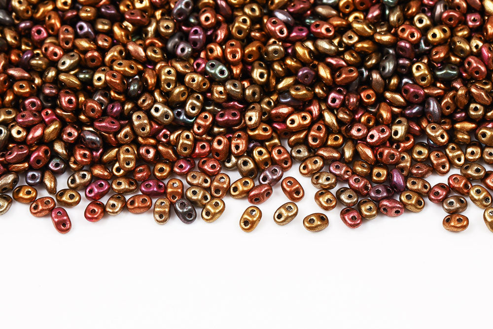 Miniduo 2×4mm Chrysolite Vitrail Mat 2-Hole Czech Beads