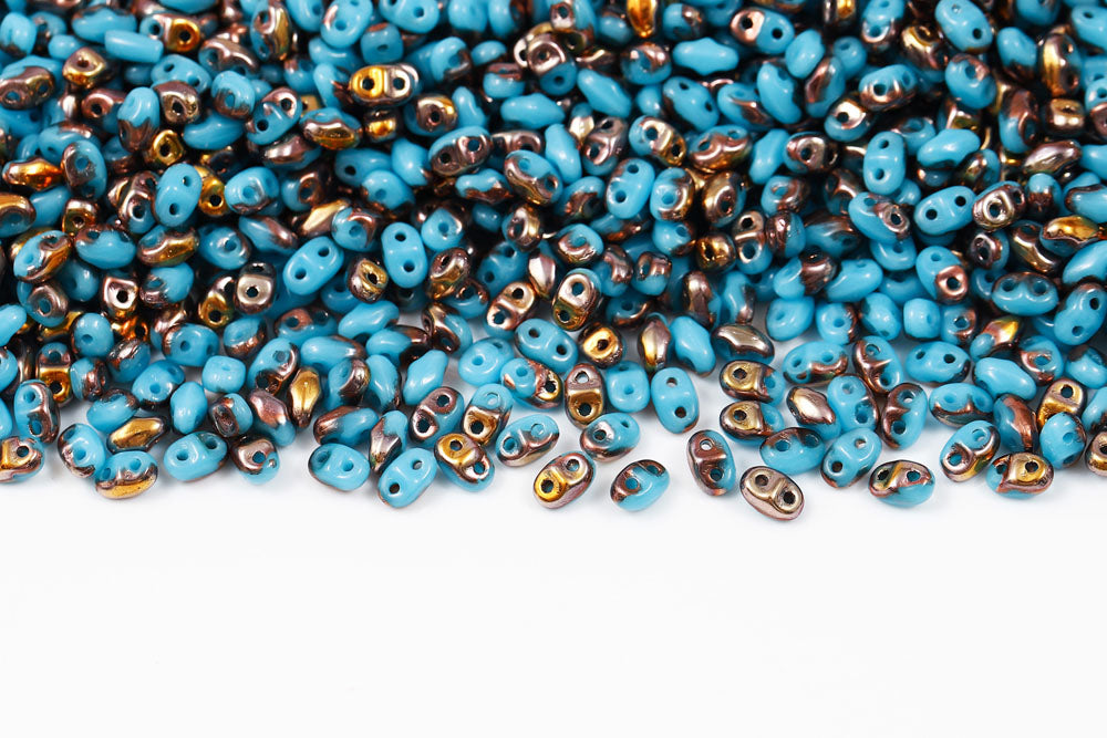 Miniduo 2×4mm Turquoise Blue Capri Gold 2-Hole Czech Beads