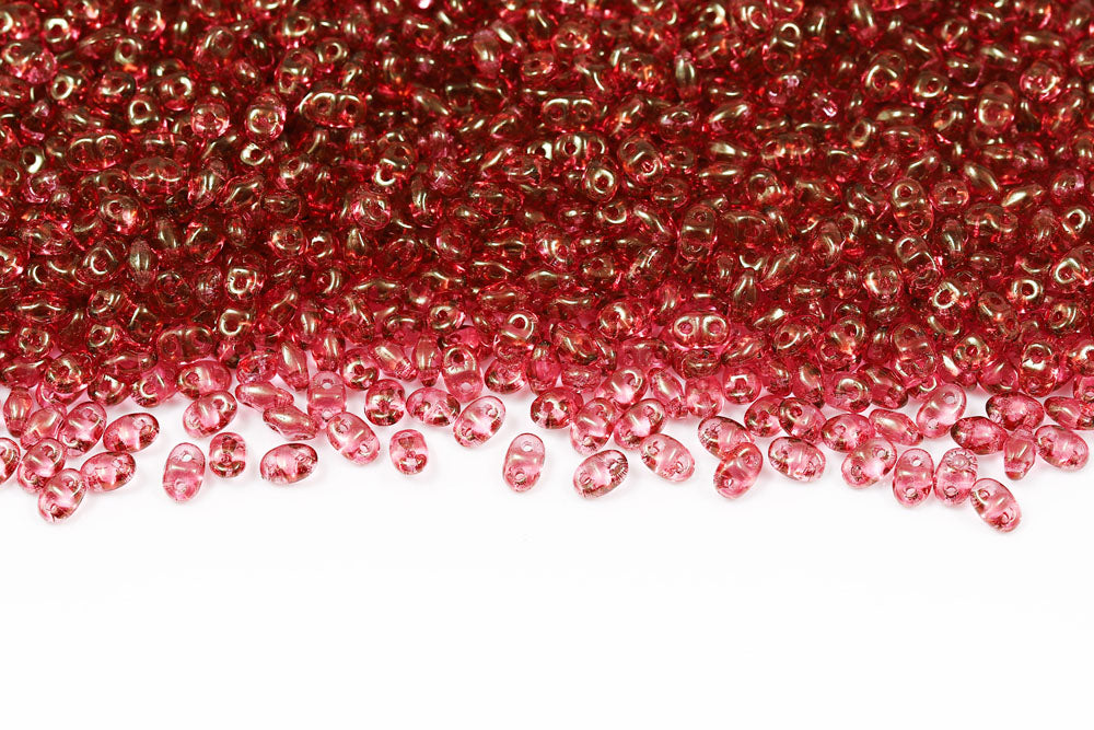 Miniduo 2×4mm Crystal Red Luster 2-Hole Czech Beads