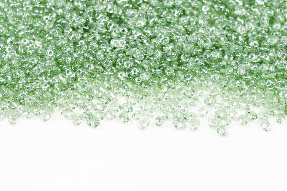 Miniduo 2×4mm Crystal Green Luster 2-Hole Czech Beads