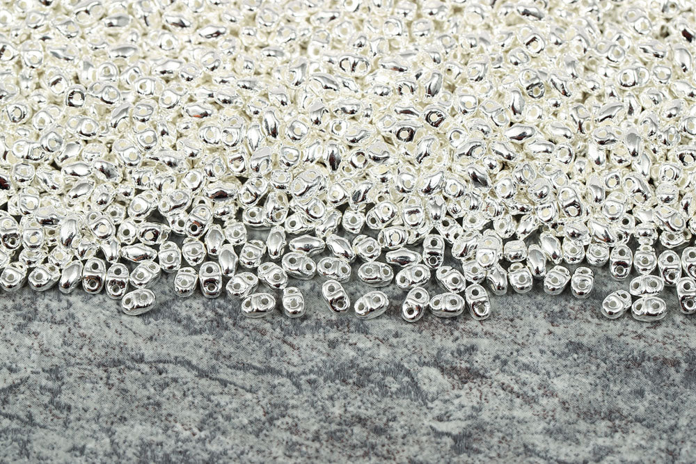 Miniduo 2×4mm Silver Plated 2-Hole Czech Beads