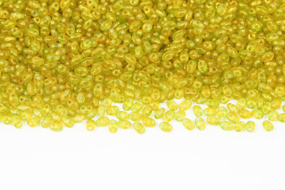 Miniduo 2×4mm Crystal Frozen Green-yellow Matt 2-Hole Czech Beads