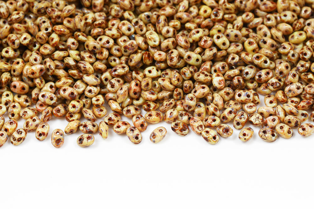 Miniduo 2×4mm Chalk Travertin Dark 2-Hole Czech Beads