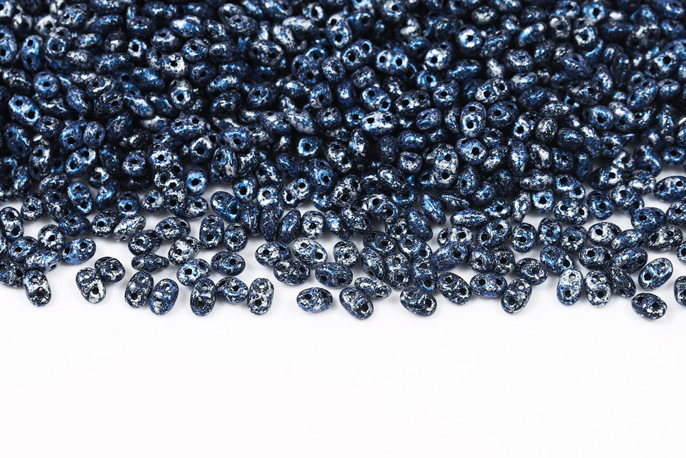 Miniduo 2×4mm Metallic Suede Dark Blue 2-Hole Czech Beads