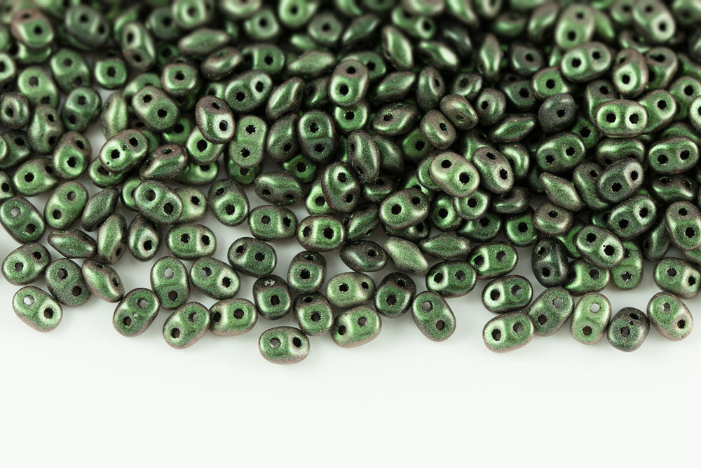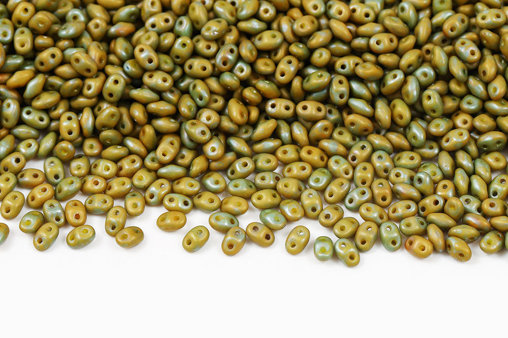 Miniduo 2×4mm Crystal Frozen Dark Olivine Matt 2-Hole Czech Beads