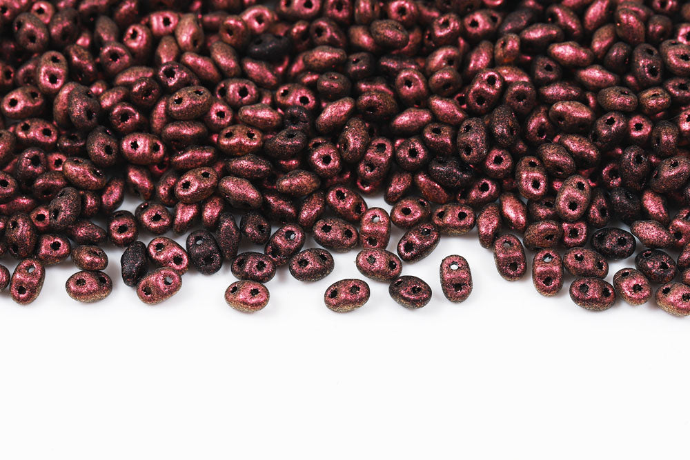 Miniduo 2×4mm Metallic Suede Dark Plum 2-Hole Czech Beads