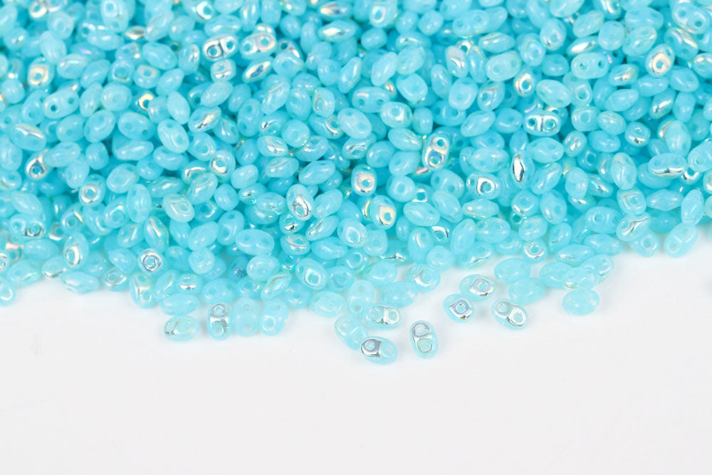 Miniduo 2×4mm Opal Aqua White Luster 2-Hole Czech Beads