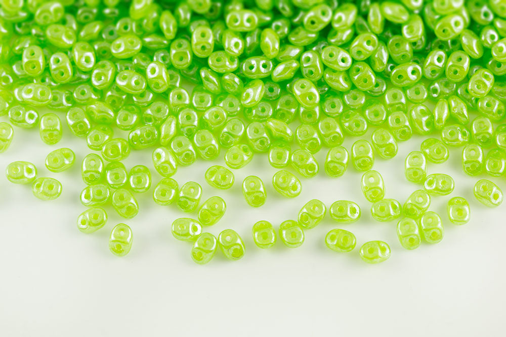 Miniduo 2×4mm Opal Green White Luster 2-Hole Czech Beads